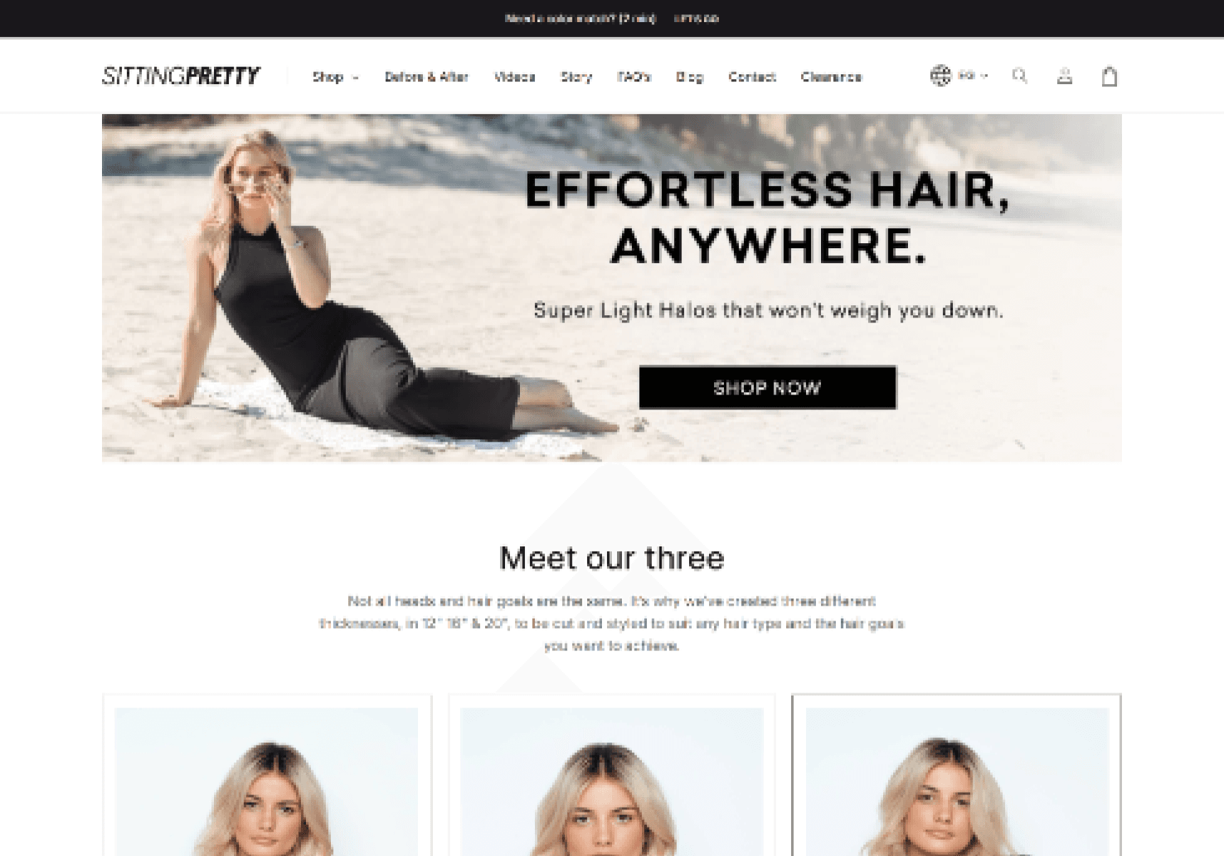 Redesigned Sitting Pretty Halo Hair’s website to improve usability, streamline navigation, and deliver a premium shopping experience that showcases products and strengthens brand aesthetics.