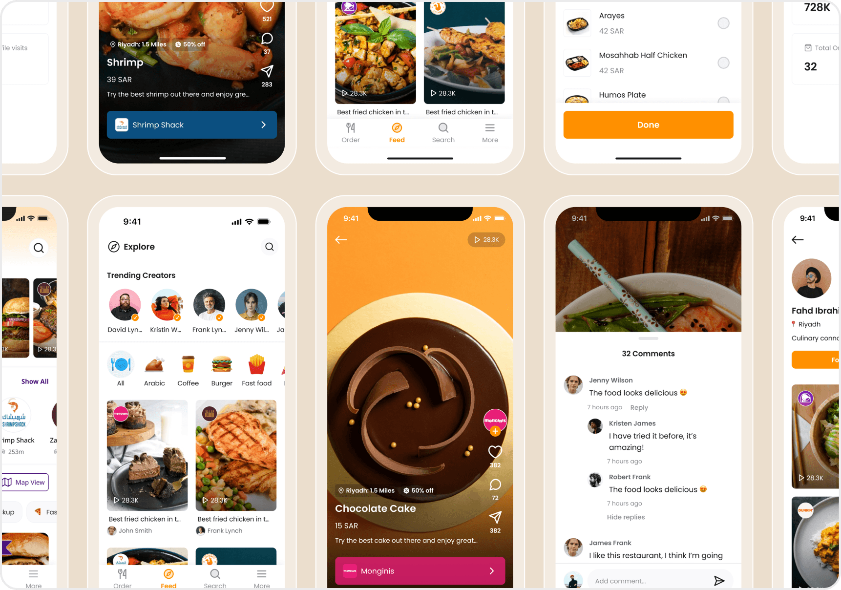 A visual walkthrough of Koinz Social, showcasing how I designed an experience where users order directly from reels and the social feed, while creators upload engaging food content.