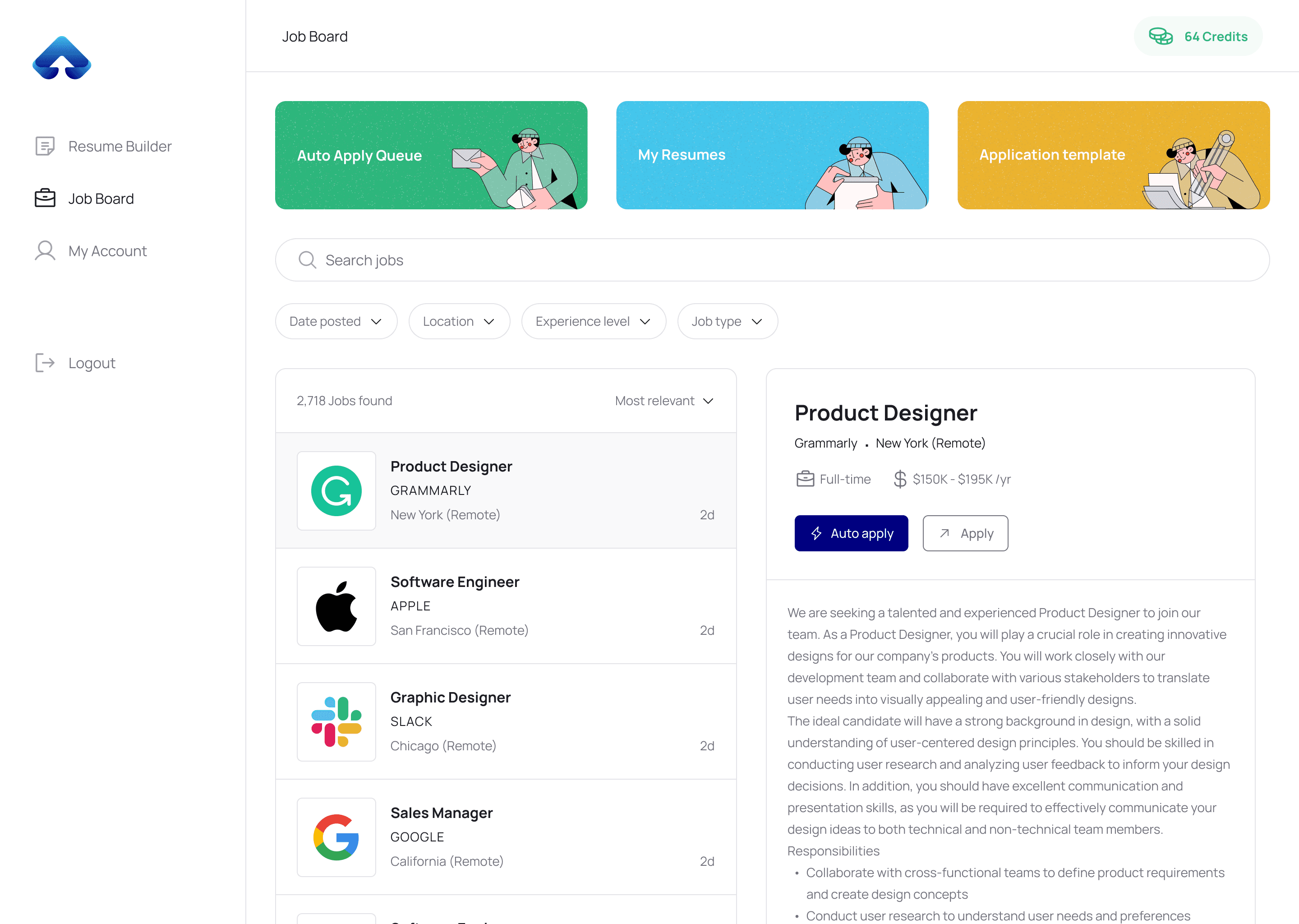 Designed an AI-powered job board platform with auto-apply, resume tailoring, and a resume builder, streamlining the job search process.